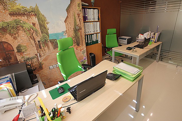 Стильный реализованный проект с зелеными креслами, подчеркивающими корпоративный стиль компании